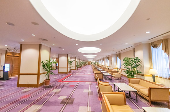 大宴会場 鳳凰の間(1,280㎡)は4分割にでき結婚披露宴からビジネスミーティング、展示会、忘新年会や謝恩会までお客様の目的に応じた最適な空間をご提供いたします。