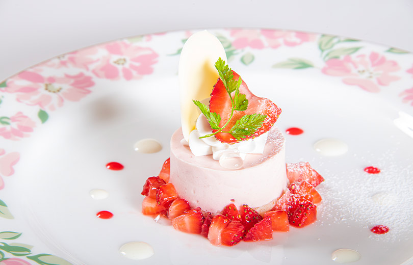 苺とホワイトチョコのムース 赤いベリーのナパージュ