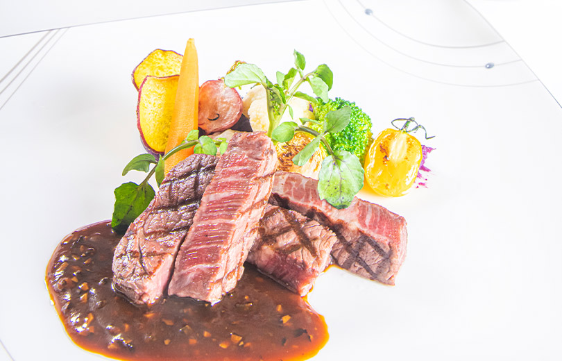 国産牛フィレ肉のステーキ 柚子胡椒と赤ワインの芳醇な香り